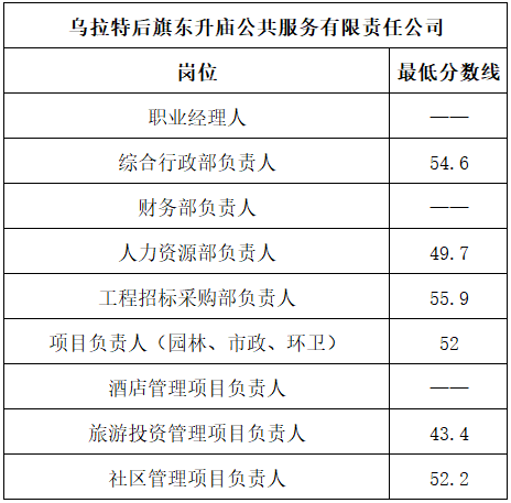 根據(jù)《烏拉特后旗國有企業(yè)工作人員公開招聘公告》工作安排,現(xiàn)就筆試成績、資格復(fù)審及領(lǐng)取面試準(zhǔn)考證有關(guān)事項(xiàng)通知如下: